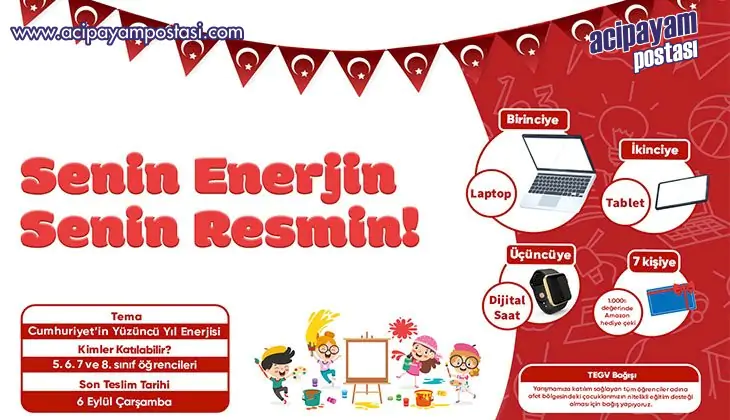 Aksa Elektrik’in bu yıl beşincisini düzenlediği “Senin Enerjin Senin Resmin” yarışması 23 Ağustos’ta başlıyor. Yarışma, Cumhuriyet’in yüz yıllık tarihine, gelişimine, Mustafa Kemal Atatürk’ün ilkelerine, ülkemizin sahip olduğu değerlere dikkat çekmek amacıyla bu yıl “Cumhuriyet’in Yüzüncü Yıl Enerjisi” temasıyla gerçekleşiyor. Türkiye’nin tüm illerinden 5, 6, 7 ve 8’inci sınıfta eğitim gören öğrenciler, 06 Eylül tarihine kadar Aksa Elektrik’in Facebook ve Instagram sosyal medya hesapları üzerinden resimlerini göndererek yarışmaya katılabilecek. Aksa Elektrik tarafından belirlenen jürinin yaptığı değerlendirme sonucunda ise kazananlar 15 Eylül Cuma günü Aksa Elektrik’in sosyal medya hesaplarında açıklanacak.