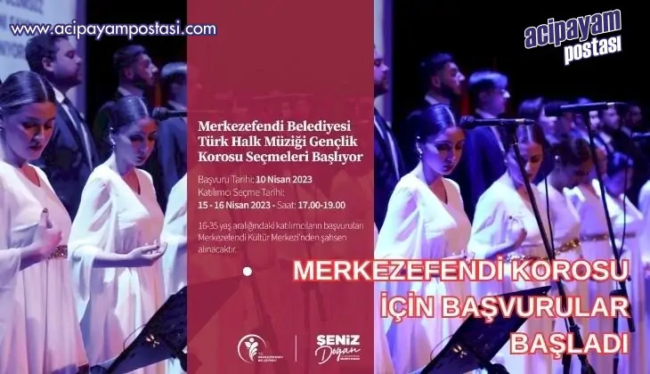 Kültür ve sanat anlamında çalışmalarına devam eden Merkezefendi Belediyesi, yeni yetenekleri ilçeye kazandıracak. Merkezefendi Belediyesi’nin Kültür Müdürlüğü bünyesindeki Türk Halk Müziği Gençlik Korosu başvuruları başladı. Türk Halk Müziği'ne ilgi duyan ve koro çalışmalarında yer almak isteyen 16-35 yaş aralığındaki katılımcılar başvurularını 10-14 Nisan tarihleri arasında Merkezefendi Kültür Merkezi’nden şahsen yapabilecek.
