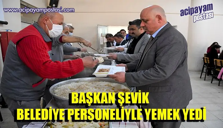 Belediye Başkanı Şevik, personeliyle birlikte sıraya girerek, kendi yemeğini kendisi aldı ve çalışanlarla aynı masada yemek yiyerek sohbet etti.