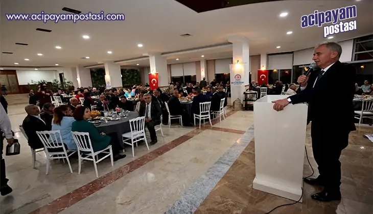Denizli Büyükşehir Belediyesi iftar sofrası geleneğini kent merkezinde görev yapan mahalle muhtarları ile sürdürdü. Denizli Polisevi’nde düzenlenen iftara Denizli Büyükşehir Belediye Başkanı Osman Zolan, eşi Berrin Zolan, Büyükşehir Belediyesi DESKİ Genel Müdürü Niyazi Türlü, Genel Sekreter Yardımcısı Serhat Akbulut ve Ömer Faruk Özer ile daire başkanları, mahalle muhtarları ve aileleri katıldı. Program öncesi muhtarlarla tek tek selamlaşan Başkan Zolan ve eşi Berrin Zolan, tüm konukların ramazan aylarını tebrik etti. Başkan Zolan iftarın ardından yaptığı konuşmada bir ramazan ayına daha kavuşmanın sevincini yaşadıklarını belirterek, “Allah’ım tutmuş olduğumuz oruçları, yapmış olduğumuz ibadetleri kabul ve makbul eylesin inşallah” dedi. Ramazan ayına Kahramanmaraş merkezli depremden dolayı buruk başladıklarını kaydeden Başkan Zolan, depremin ilk anından itibaren öncelikle itfaiye olmak üzere tüm Büyükşehir Belediyesi ekiplerinin bölge için seferber odluğunu, oradaki vatandaşların imdadına Denizli halkı ile beraber koştuklarını, yardım kampanyaları organizasyonu konusunda muhtarların da çok büyük katkıları olduğunu anlattı.