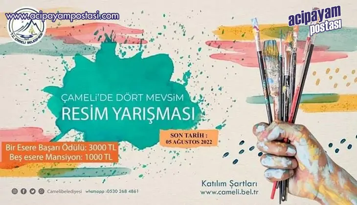 Çameli Belediyesi ‘’Çameli’de Dört Mevsim Resim Yarışması düzenliyor Çameli ilçe sınırları içerisinde yer alan ilçenin 4 Mevsim Resimlerin dahil olacağı ödüllü yarışma sonbahar, kış, ilkbahar ve yaz aylarını konu alan 4 etaptan oluşuyor.