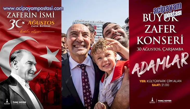 İzmir Büyükşehir Belediyesi, 30 Ağustos Zafer Bayramı’nın 101’inci yıldönümü için bir dizi etkinlik düzenliyor. Başkan Tunç Soyer’in resmi törenlere katılmasıyla başlayacak kutlamalar kentte renkli anlara sahne olacak. Bayram Kültür Park’taki Adamlar konseriyle sonlanacak.