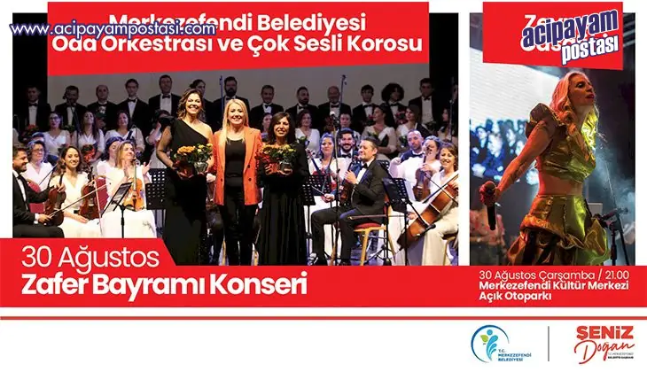 Merkezefendi Belediyesi, 30 Ağustos Zafer Bayramı’nı kutlamak için düzenleyeceği etkinliklerle Denizlililere 30 Ağustos’un coşkusunu yaşatmaya hazırlanıyor. 30 Ağustos Zafer Bayramı'nın 101. yıl dönümüne özel olarak gerçekleştirilecek konserde Merkezefendi Belediyesi Oda Orkestrası ve Çok Sesli Korosu ile Türkiye'nin sevilen ismi Zeynep Casalini sahne alacak. Birbirinden güzel şarkıların seslendirileceği konser, 30 Ağustos Çarşamba günü saat 21.00'de, Merkezefendi Kültür Merkezi Açık Otoparkı'nda düzenlenecek.