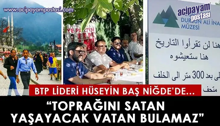 GenelBTP Başkanı Hüseyin Baş, “Bir memurun, bir esnafın, bir işçinin ev tutup kira ödemesi mümkün değil. Dolayısıyla, ‘ben nerede hayatımı idame ettiririm’ diye plan yapmaya başlıyor. Yani ülkeyi bizim insanımız terk etmek zorunda kalıyor. Boşalan yerleri de yabancılara toprak satışları şeklinde elimizden çıkarıyorlar. Bunun bir benzerini Filistin yaşadı. Topraklarını sattılar İsraillilere. Kendi vatanını para karşılığı devredenler şu anda yaşayacak vatan bulamaz hale geldi” dedi.Yurt gezilerini sürdüren Bağımsız Türkiye Partisi (BTP) Genel Başkanı Hüseyin Baş’ın yeni durağı Niğde oldu.BTP’nin Niğde teşkilatıyla buluşan Hüseyin Baş yerel seçim konusunda atılacak adımları anlattı, gündeme ilişkin değerlendirmeler yaptı.