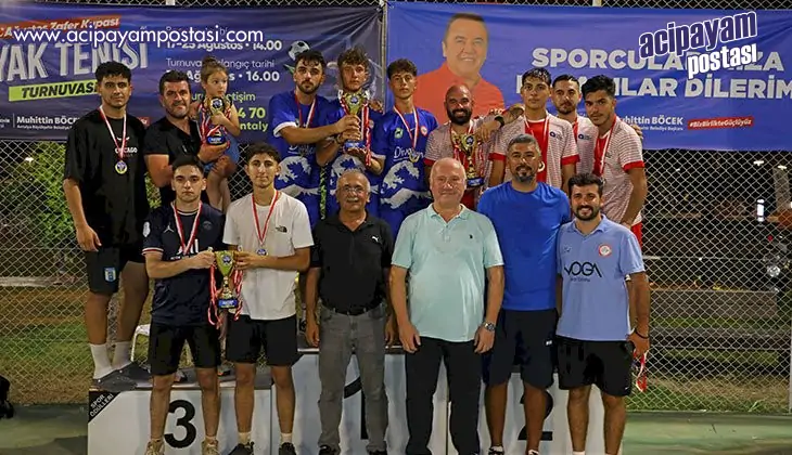Antalya Büyükşehir Belediyesi Gençlik ve Spor Hizmetleri Dairesi Başkanlığı tarafından düzenlenen ‘30 Ağustos Zafer Kupası Ayak Tenisi Turnuvası’ Konyaaltı Beach Park’ta bulunan tenis kortları ile ayak tenisi sahasında gerçekleşti.