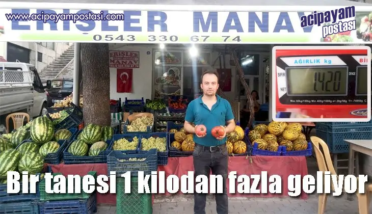 Denizli’nin Çameli ilçesinde, örtü altı seracılıkla hormonsuz, bombus arıları kullanılarak organik yetiştirilen Ata tohumu domateslerin tanesi 1 kilo ile 1 kilo 400 gram arasında geliyor. Çameli İlçesi’nde bir tanıdığının tarlasında 400 kilogram domates alan Gökhan Eriş, manavına getirdiği domateslerden birinin ağırlığı 1 kilo 420 gram geldi.