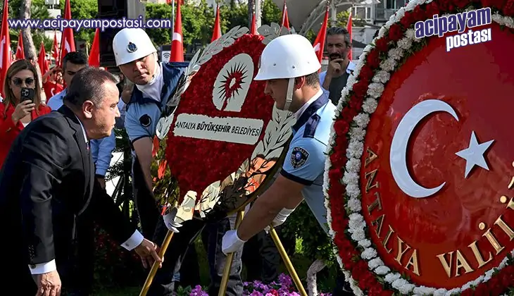 30 Ağustos Zafer Bayramı'nın 101. yıl dönümü kapsamında Antalya’da ilk olarak Cumhuriyet Meydanı’nda tören düzenlendi. Antalya Valisi Hulusi Şahin ve Antalya Büyükşehir Belediye Başkanı Muhittin Böcek, meydandaki Atatürk Anıtı’na çelenk bıraktı.