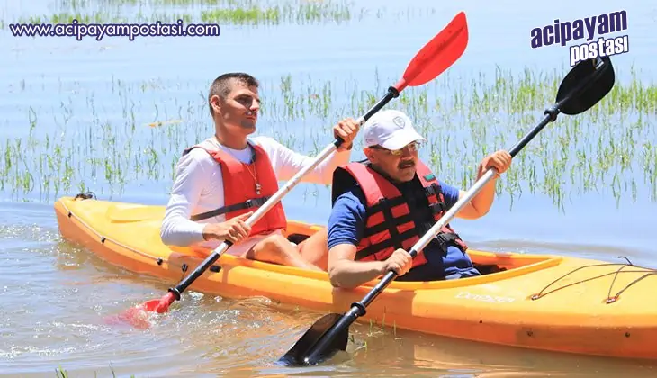 İki gün süren Çivril Nilüfer Şenlikleri kapsamında Çivril’e gelen İzmir Kano Kulübünden 70 sporcu göl kenarında kamp yapma fırsatı bulurken Işıklı gölünde de kano yarışı ve gezintisi yaptı. Çivril Işıklı Gölünün Kano sporu için çok ideal bir göl olduğunu ifade eden Kano İzmir grup lideri Onur Ergun “öncelikle Çivril’e ve Çivrillilere ev sahipliğiniz ve misafirperverliğiniz için çok teşekkür ederim. Katılan bütün arkadaşlarım harika zaman geçirdiklerini dile getirdiler ve başkanımız Niyazi Vural’a teşekkürlerini iletiyorlar. Geçen yıl ilki düzenlenen Nilüfer festivallerine katılamamıştık. Bu yıl ikincisi düzenlenen şenliklere davetli olarak geldik. Açıkçası gelirken tereddütlüydük, daha önce Kano sporunun hiç yapılmadığı ve bizim camiamızda hiç bilinmeyen bir bölgeye geliyorduk. Ne olacağını bilmiyorduk en azından kamp yapmış oluruz düşüncesi ile Çivril’e geldik ve geldiğimiz andan itibaren de müthiş bir manzara ve ev sahibi ile karşılaştık. Çadır kurduk ve sabahın ilk ışıkları ile kanolarımızla göle açıldık. Ege Bölgesinde Kano yapılabilecek en güzel noktalardan birinin ışıklı Gölü olduğunu yaşayarak öğrendik. Yıl içinde artık sık sık Işıklı Gölüne ve Çivril’e geleceğiz. Bu göl Kano sporu için çok ideal ve kamp olanağı da var” diyerek duydukları memnuiyeti dile getirdi.