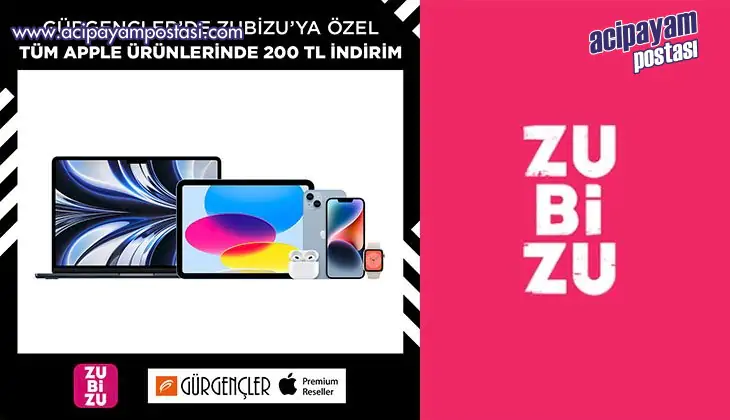 ZUBİZU’nun fırsatlar dünyasına Apple Yetkili Satıcısı Gürgençler de katıldı. Gürgençler mağazaları ve gurgencler.com.tr’den 31 Ağustos’a kadar yapacakları 15.000 TL ve üzeri alışverişlerde ZUBİZU üyeleri mevcut kampanyalara ek 200 TL indirim kazanıyor.